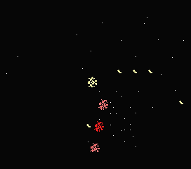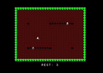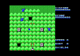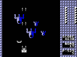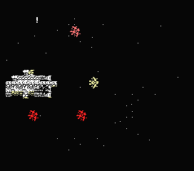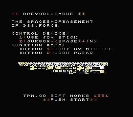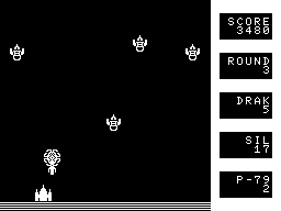 TPM co Soft | 1P | MSX 1 | SHOOTER | Yes near black and whitegame.A nice star parallax in this shooter, you have to destroy the mother base, but be careful, ennemy's ships are quite aggresive, 1 shot and you're dead.A nice concept. | |