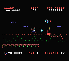 MSX FILES | 1P | MSX 2 | This game is a re-convertion from SG-1000 version of Three Dragon Story, an old console from SEGA. This game was made in Korea for MSX, and later ported to SG-1000. Since the MSX version isn't dumped - I ported back the game from SG-1000 to MSX, with some few improvements. | ||